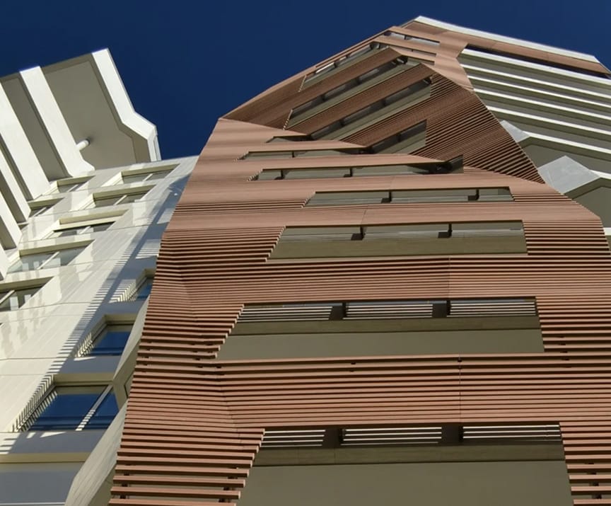 I frangisole Versatilis sono applicati a pareti esterne o facciate ventilate, proteggono gli edifici dai raggi UV e dagli agenti atmosferici, garantendo una temperatura interna ottimale in ogni stagione. Il risultato è un ambiente più confortevole, efficiente dal punto di vista energetico e valorizzato da una forte identità architettonica.